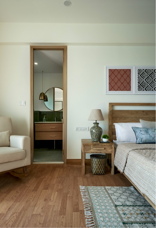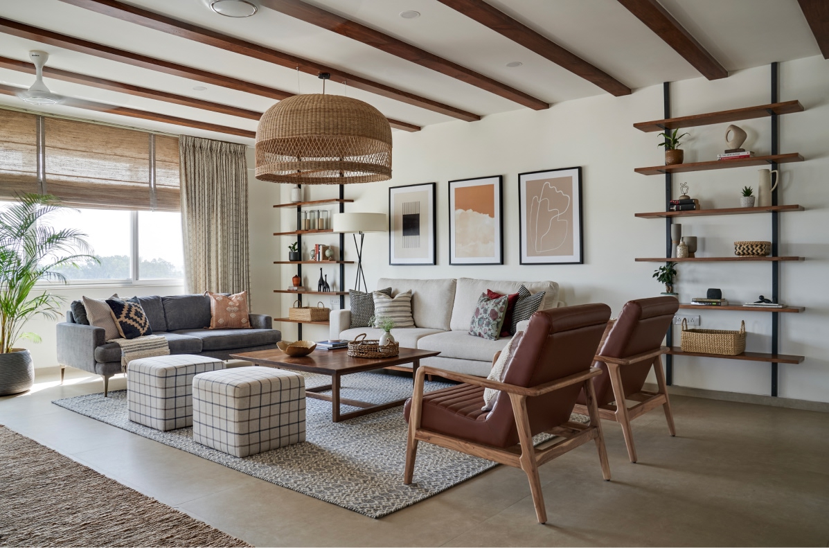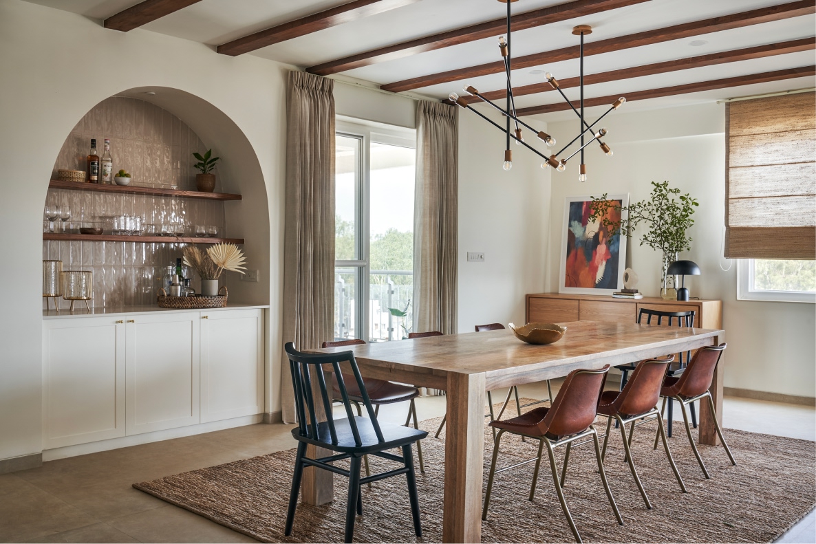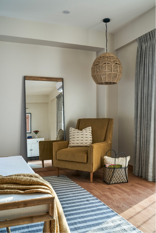 Bearing witness to their move from the States to the quaint city of Belgaum, this home is a true harbinger of new beginnings. The house combines California’s casual charm with modern, functional design, embracing a relaxed, effortless aesthetic. A pared-down palette experiments with whites, blues, ochre, and olive to create spaces that amalgamate comfort, warmth, and character.