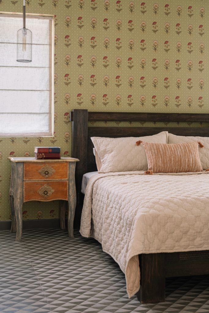 Championing a proudly Indian palette of materiality and vivid hues, the bedrooms script vignettes that belong in a plantation-style home — a mood board of vibrant patterns, tactile textures, and gauzy linens comprising the visuals.