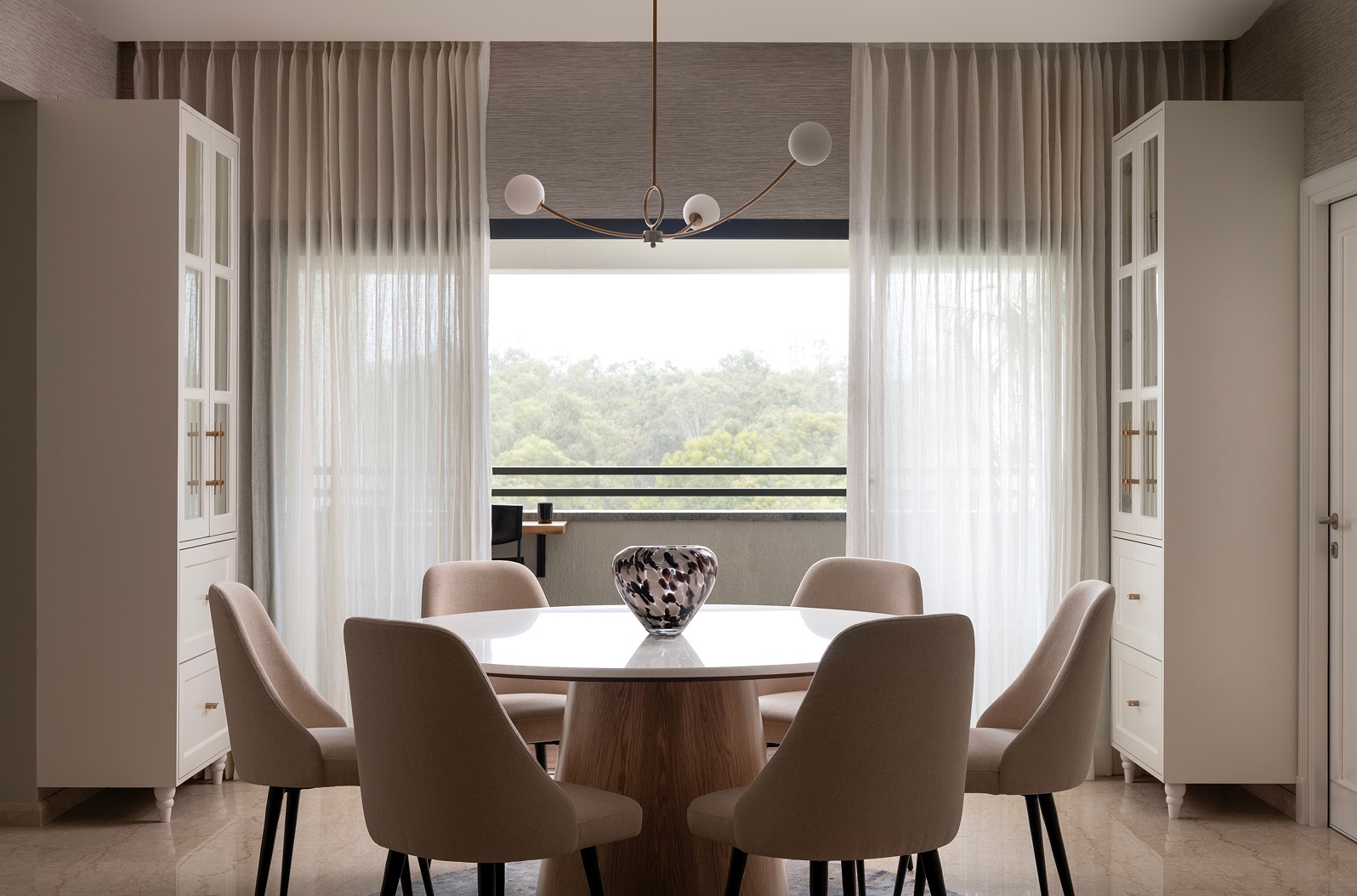 Simplicity is the most elegant garb a space can be adorned with; this Bangalore apartment stands as a testament to this maxim. With views of the verdant Turahalli Forest unfolding beyond the windows, the home is a snug, neutral-hued retreat observing an easeful and expansive notion of space.